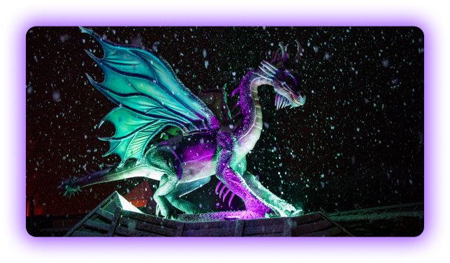 ANIMATRONISCHE DRACHEN IN EINER ZAUBERWELT AUS LICHT