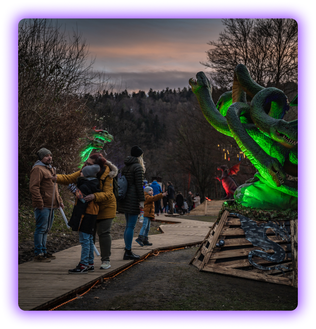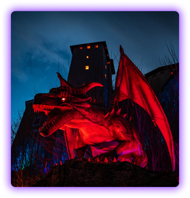 Mehr als 20 lebensgroße animatronische Drachen, beeindruckende Sound- und Lichteffekte, ein bezaubernder Lichterpark, ein spektakulärer Virtual Reality Drachenflug, faszinierendes Video-Mapping, maßgeschneidertes Storytelling, kulinarische Highlights und ein großer Merchandise-Shop garantieren ein unvergessliches Erlebnis.